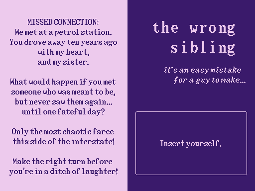 As promised, here is the postjam update with the stuff I intended to include but ran out of time to before the deadline of the Anti-Romance Jam. This includes:
