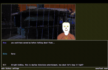 Loveless and listless or How I broke my heart four times in as many weeks or There's always a bigger fish in the sea or The only way out is through or LOCATION, LOCATION, LOCATION, LOCATION, LOCATION or Chocolate or Tough Crowd or GUT 4 TER 2 or The Haunted House of My Heart or How Can We Be Real If Our Lives Aren't Real? or The Great British Visual Novel or A Breakup Game or I guess this is my toxic yuri jam entry after all or preliminary success depression or The Second Best Time Was Yesterday or Daytime Robbery or Hunting Season or At home with the god of losing me or You either die a victim or survive long enough to become the villain or I fall in love with everyone only when I actually love no-one or Whatever Next? or I swear to you one more spin and then I'm never playing the Clash again was made using Videotome ADV in over four minutes for EctoComp 2025 with testing by Naarel and music that isn't used in the game.